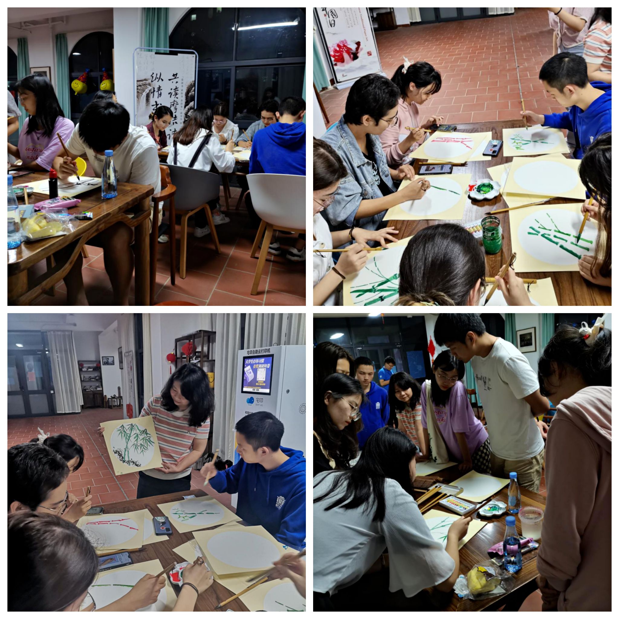 5月13日,“爱读书 读好书 善读书”读书节第一期——“共读摩诘诗,纵情书画间”读书交流会活动在翔安校区国光二“一站式”学生社区共享空间举办。翔安校区公寓办联合国际中文教育学院/海外教育学院,邀请2021级研究生李颖静同师生交流诗作,教学国画。来自翔安校区各学院的同学们共聚一堂,许多少数民族同学也到场一同感受传统文化的浸润。