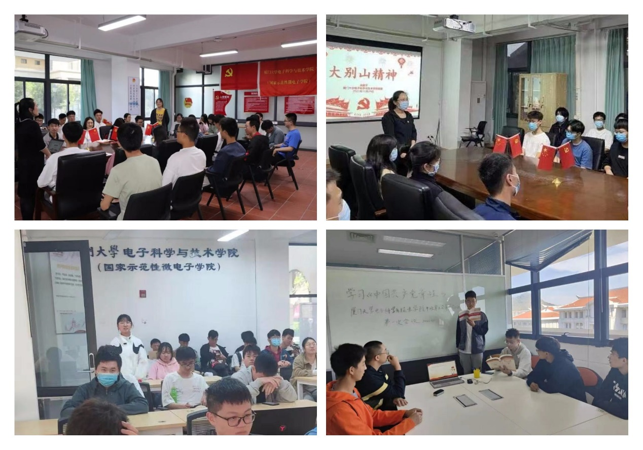 为深入贯彻落实习近平总书记关于党史学习教育的重要讲话精神,学习伟大建党精神,赓续红色血脉,汲取前进力量,充分发挥党支部战斗堡垒作用,彰显学生党员先锋示范效应,引领广大团员青年自觉听党话、跟党走,促进党团支部一体化发展,自2021年11月起,电子科学与技术学院在翔安校区“一站式”学生社区“芯创空间”开展了以“学习中国共产党人精神谱系”为主题的“党建带团建”系列学习活动。