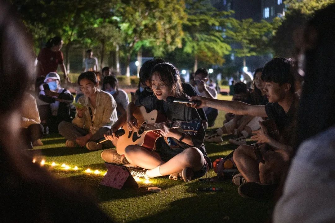 夏夜灯光,璀璨星光,还有你唱歌时眼里的光,点亮了整个夜晚。没有人在意你的歌喉是否动听,音调是否完美,人人都沉浸在音乐的海洋。当星光遇上音乐,在林间在草坪,与好友相伴,不必去远方,也是一场旅行。伴随着音乐的散去,这场草地音乐节画上了休止符。