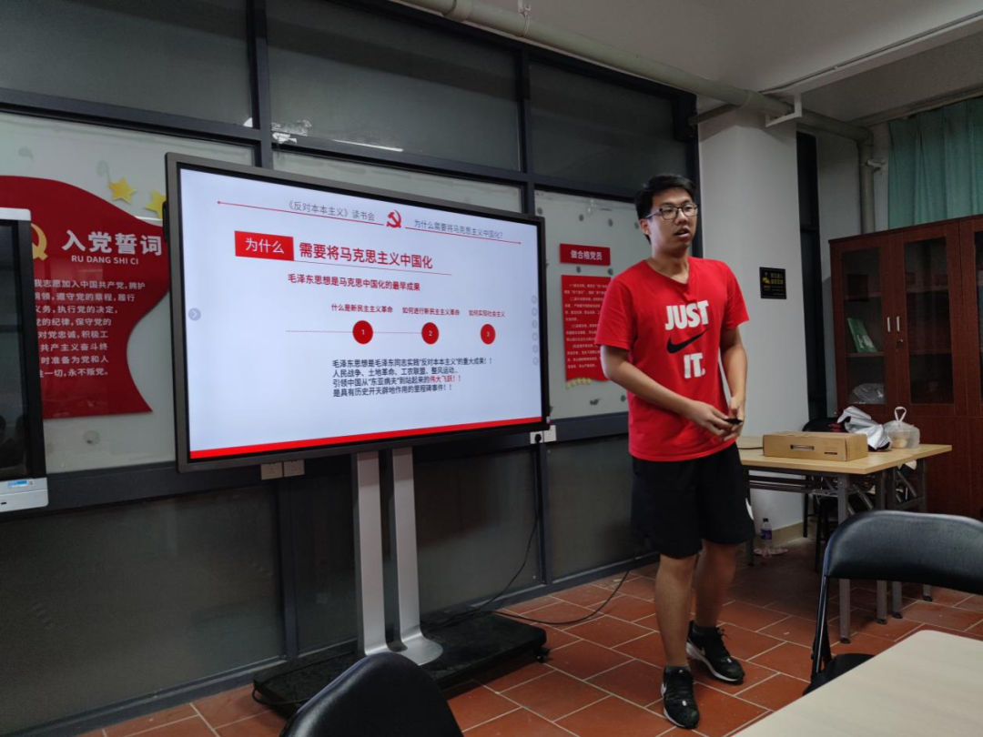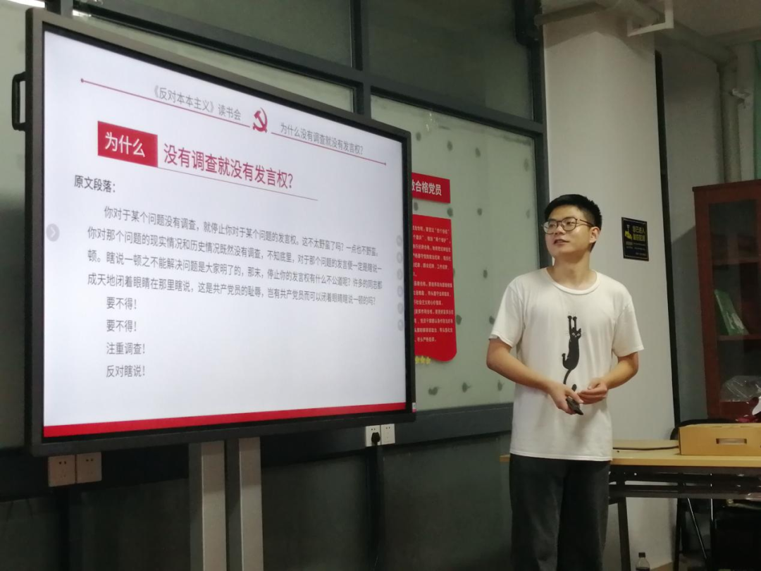 为提高支部党员政治理论素养,6月6日晚上,环境与生态学院本科生党支部在翔安校区映雪二“一站式”学生社区党团活动室学习毛泽东同志《反对本本主义》著作,通过党员同志领学、交流与分享等方式开展“读原著,学原文,悟原理”读书会活动。本次读书会由李澳、张孖怡、吴辉煌同志共同主讲,由本科生党支部书记王安胜主持。