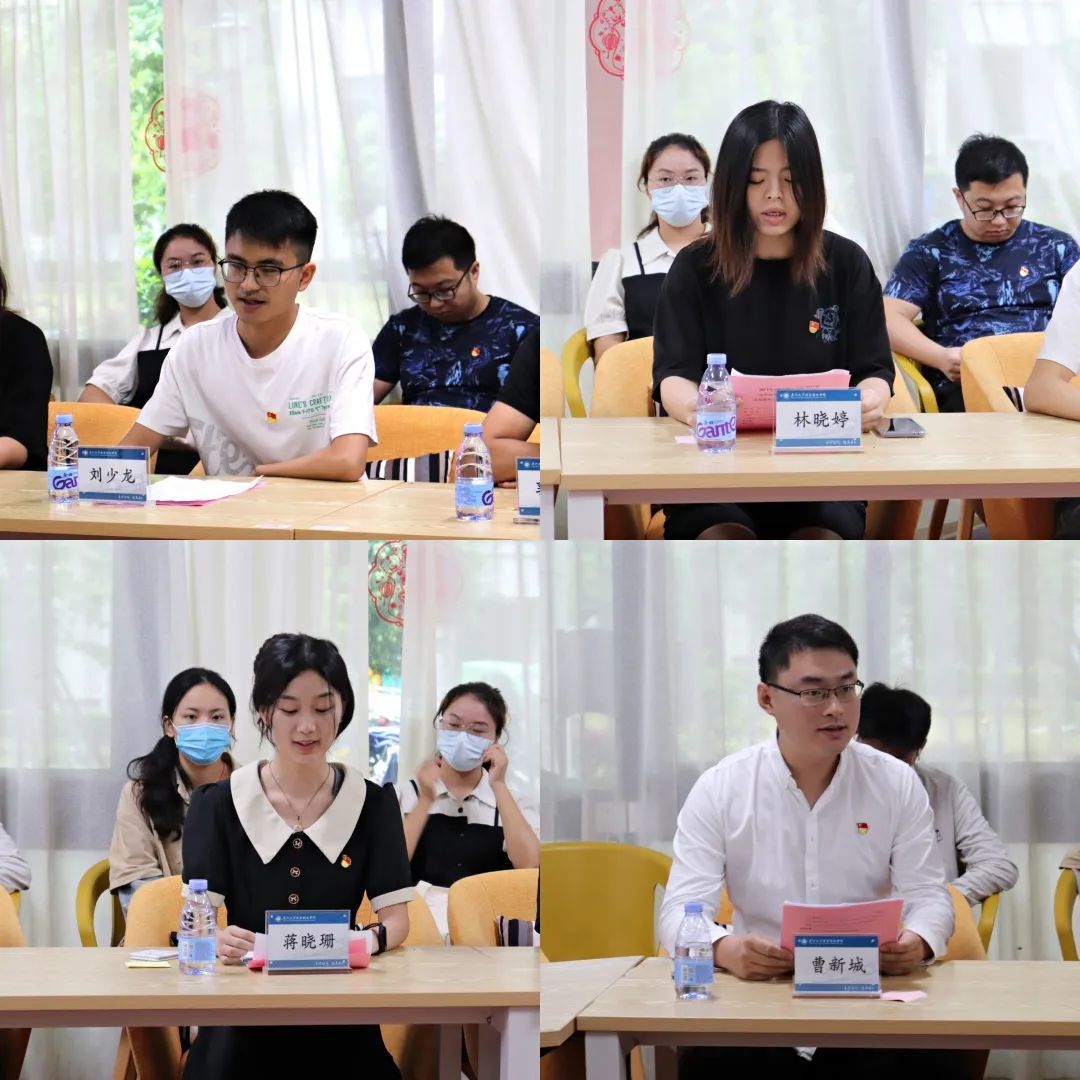 随后,毕业生党员代表何成晔、于波、郭祥、刘少龙、林晓婷、蒋晓珊、曹新城分别从重点行业就业、升学深造、基层就业三方面做主题发言。