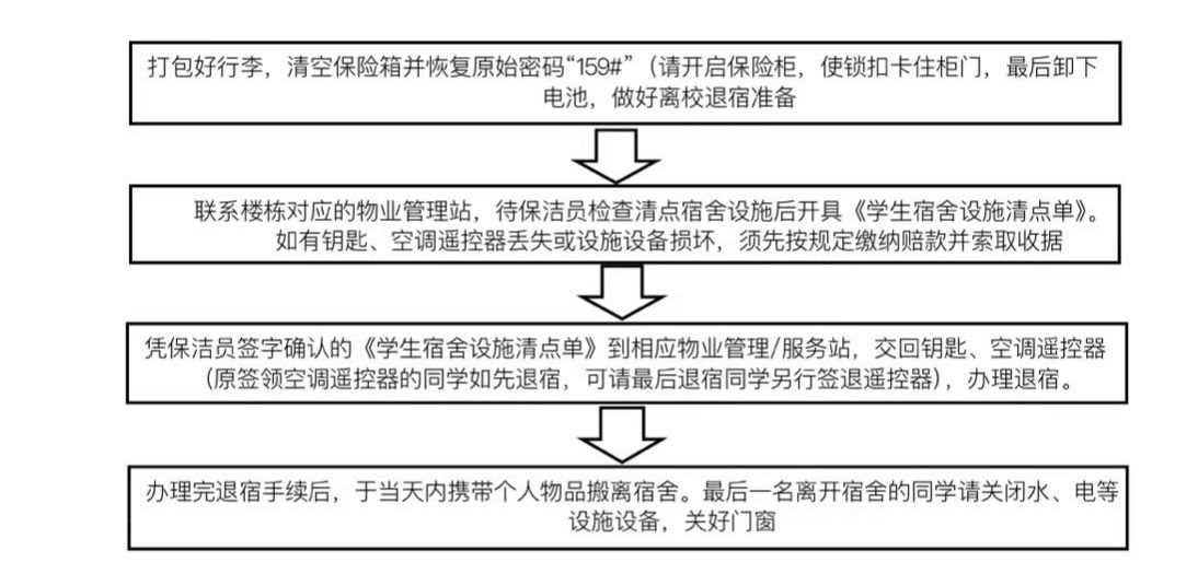 1.6月30日17:00之后,学校将关闭门禁、切断宿舍电源,对宿舍进行保洁维护。