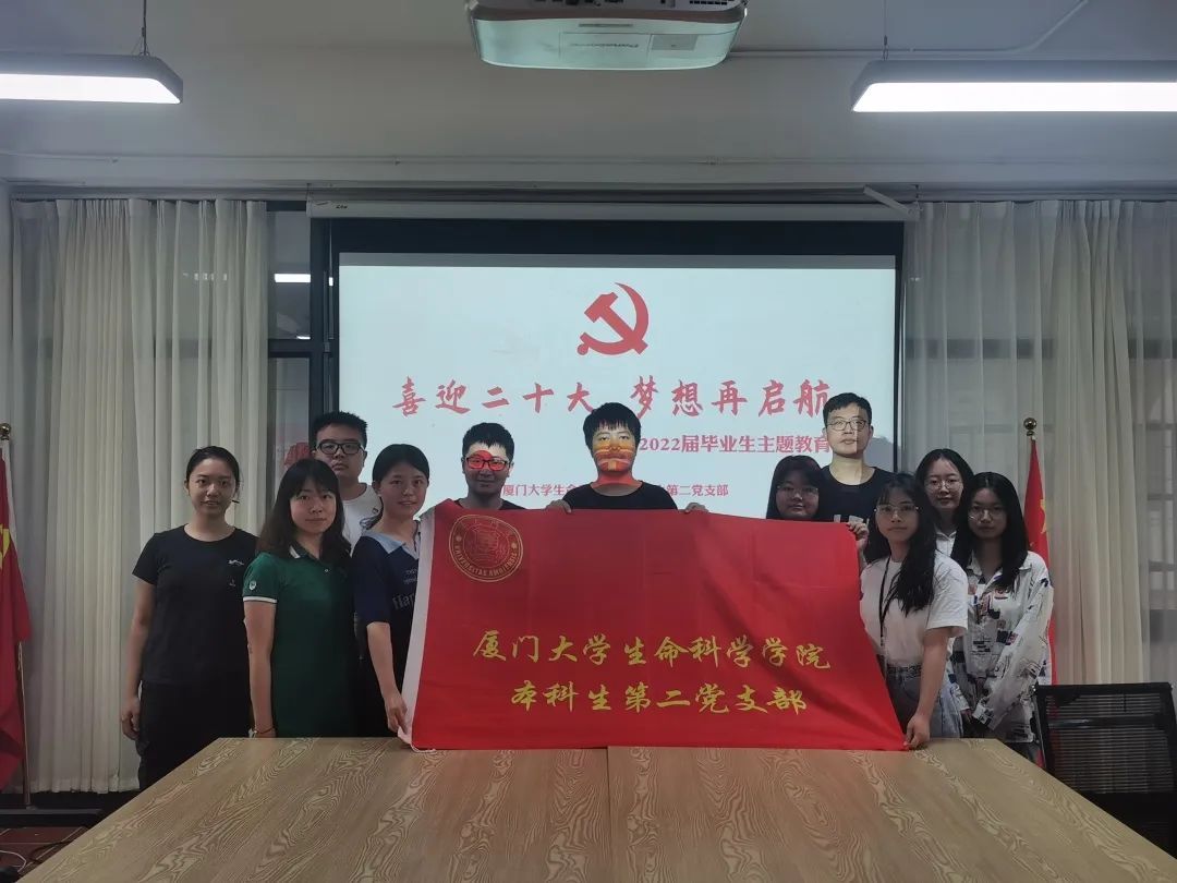 为深入学习贯彻习近平总书记在庆祝中国共产主义青年团成立100周年大会上重要讲话精神,2022年6月24日上午九点,生命科学学院本科生第二党支部在翔安校区“一站式”学生社区党团活动室开展了以“喜迎二十大 梦想再启航”为主题的2022届毕业生党员座谈会,党支部书记吴佳蓓以及全体毕业生党员出席会议。