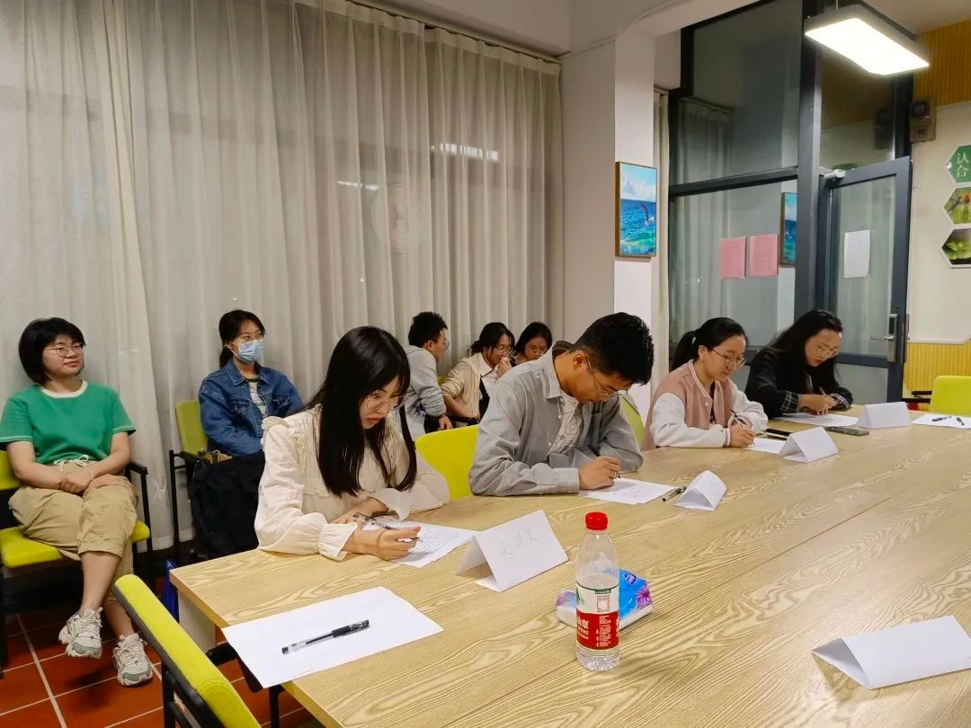 活动现场气氛十分热烈,报名参加模拟无领导小组面试的同学各个精神饱满、热情高涨,此外还有不少同学前来观摩学习,跃跃欲试。本次模拟面试的无领导小组由7-8位同学构成,参加面试的同学需要在15分钟内完成题目主题分析提炼、各自观点阐述、方案构思、问题总结、提问发言等一系列环节。