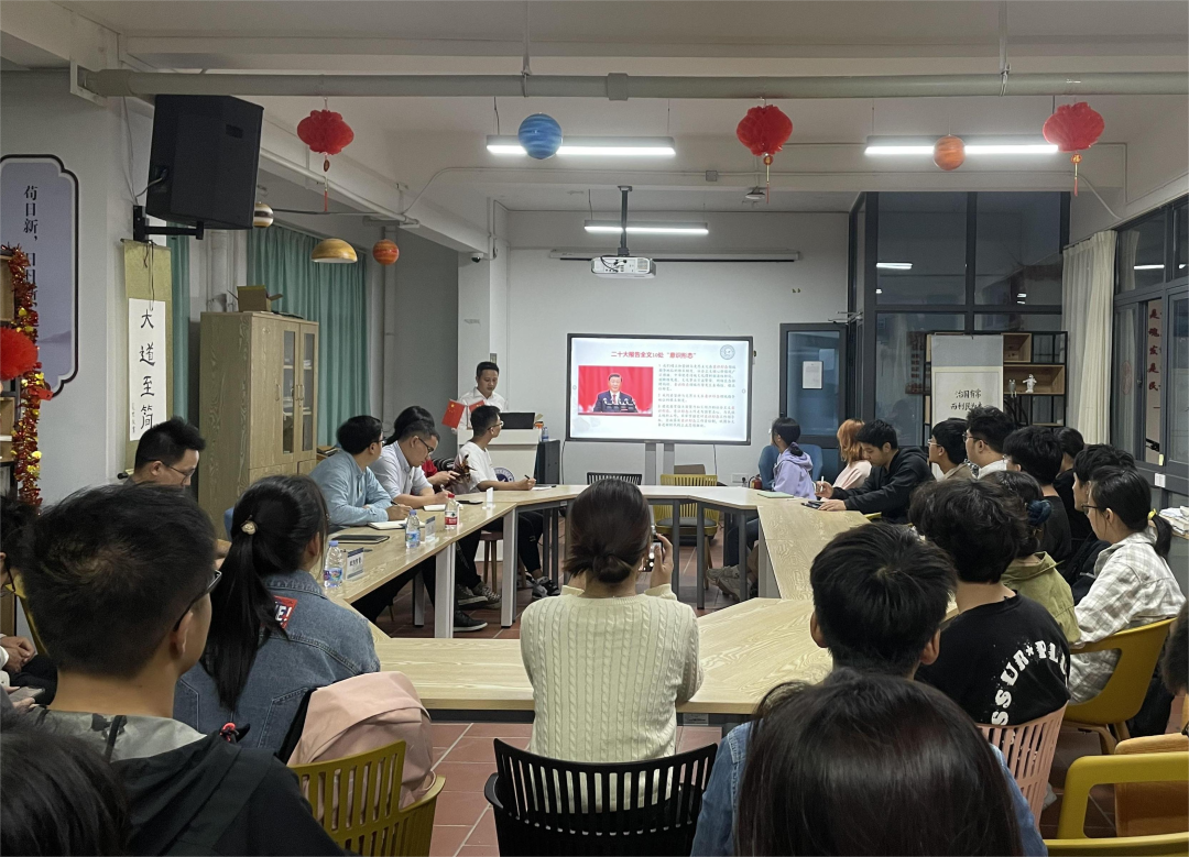 活动伊始,王寒结合学习党的二十大报告及《中国共产党宣传工作简史》作了重点交流,对党的宣传工作历史经验和宝贵精神财富做了梳理,介绍了新形势下宣传思想工作的重点,分析了中国共产党国际认同的形成中的国际传播中介作用,并通过中国共产党国际形象网宣片《CPC》等实例分享,使在场师生从坚定信仰、为民初心、天下情怀等层面很好地理解了“我是谁”的设问,充分感受到百年大党的光辉形象和全心全意为人民服务的奉献精神,永远保持思想的纯洁与坚定,汇聚起中华民族伟大复兴的磅礴力量。