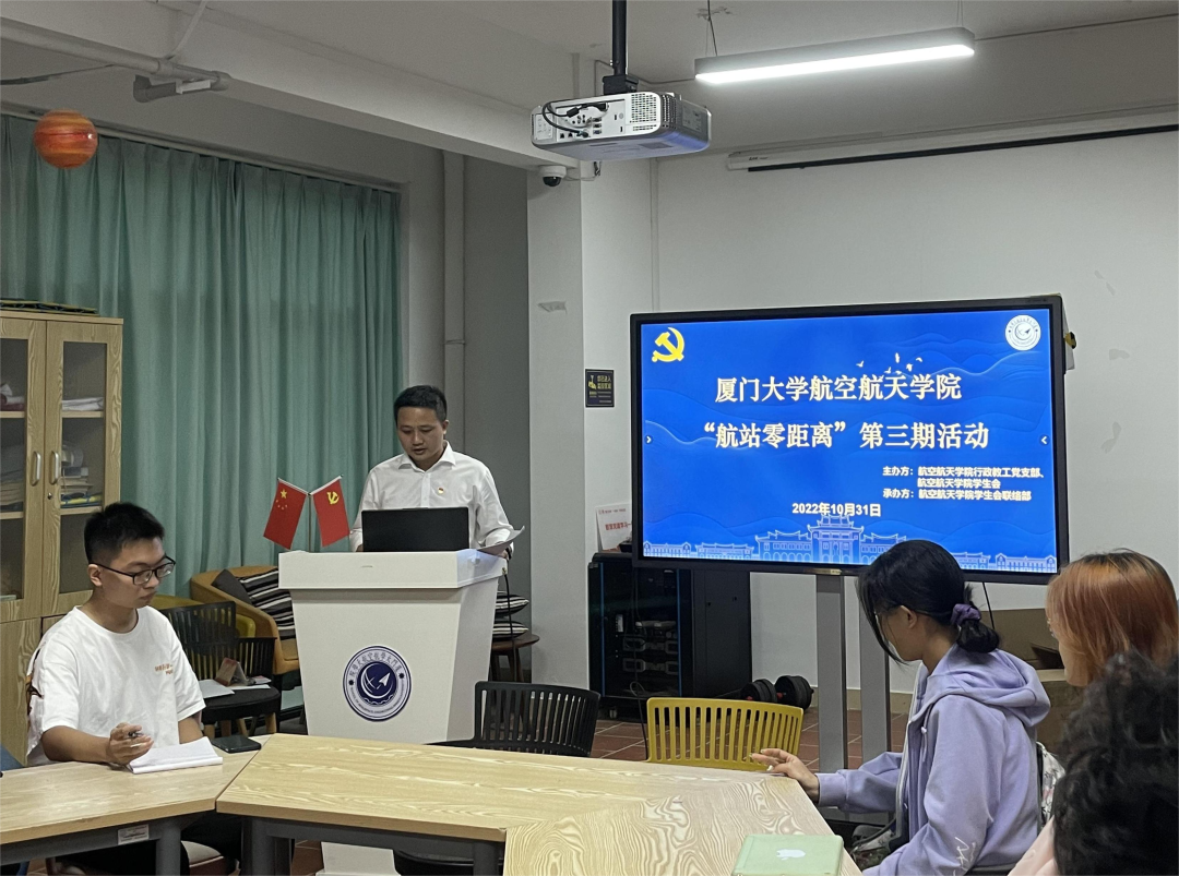 为学习宣传贯彻党的二十大精神,深入开展“我为师生办实事”实践活动,解决学生在学习成长方面所面临的困惑,10月31日下午,航空航天学院行政教工党支部联合院学生会在翔安校区映雪园区“一站式”学生社区举办了第三期“航站零距离”活动,本次活动主题为“学思践悟二十大,倾听心声促成长”。学院党委副书记王寒,行政教工党支部副书记、团委书记沈鑫,“一站式”学生社区兼职辅导员欧阳智贤、蔡鹏程及30余名同学参加活动。