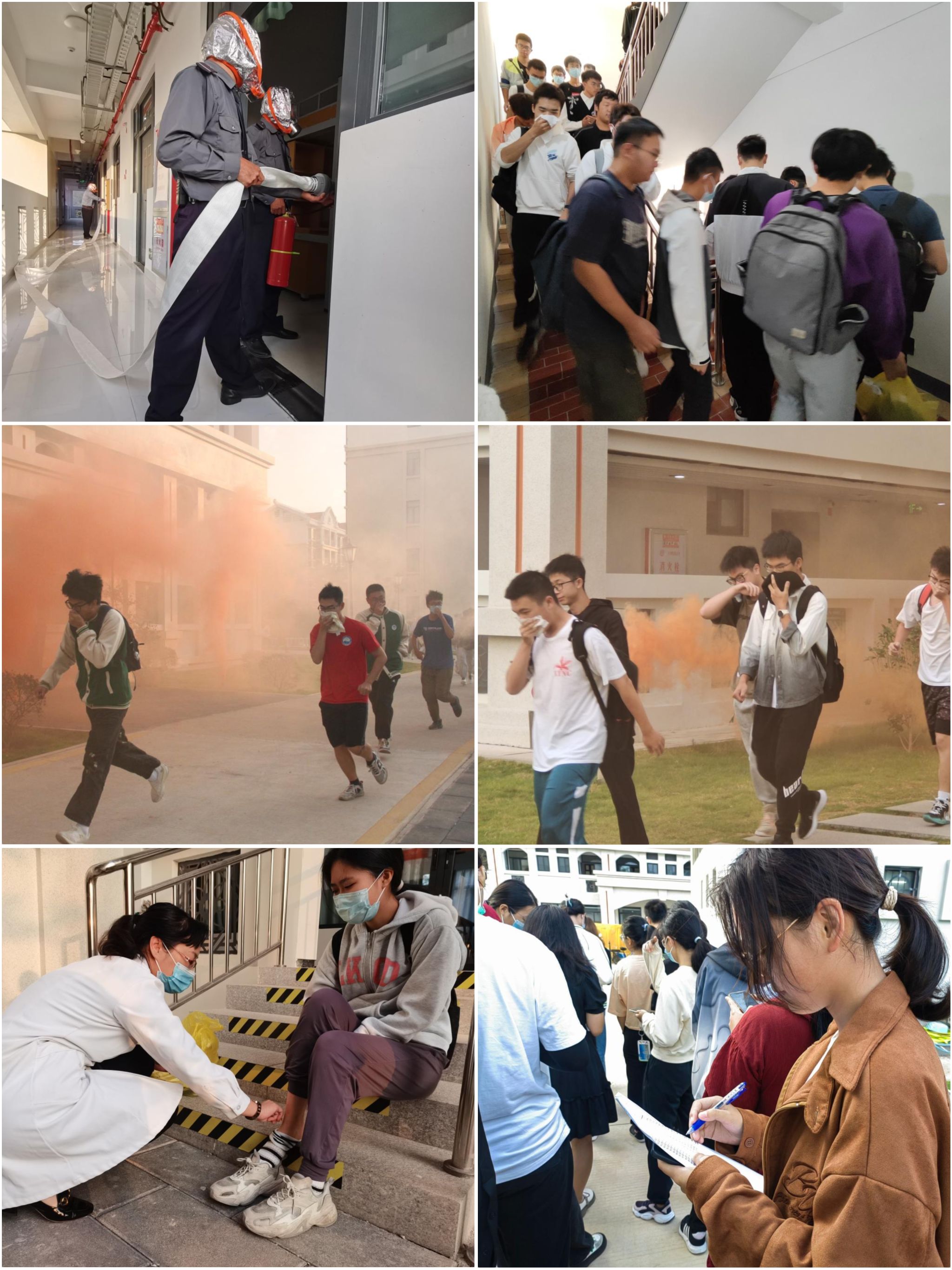 演练设在五期学生公寓国光14、国光15宿舍楼,共有来自信息学院、电子科学与技术学院、医学院、海洋与地球学院、环境与生态学院和药学院共6个学院的1333名学生参加。翔安校区公寓办、校区办、保卫办、后勤集团、医管办、资产办和相关学院共同参与。