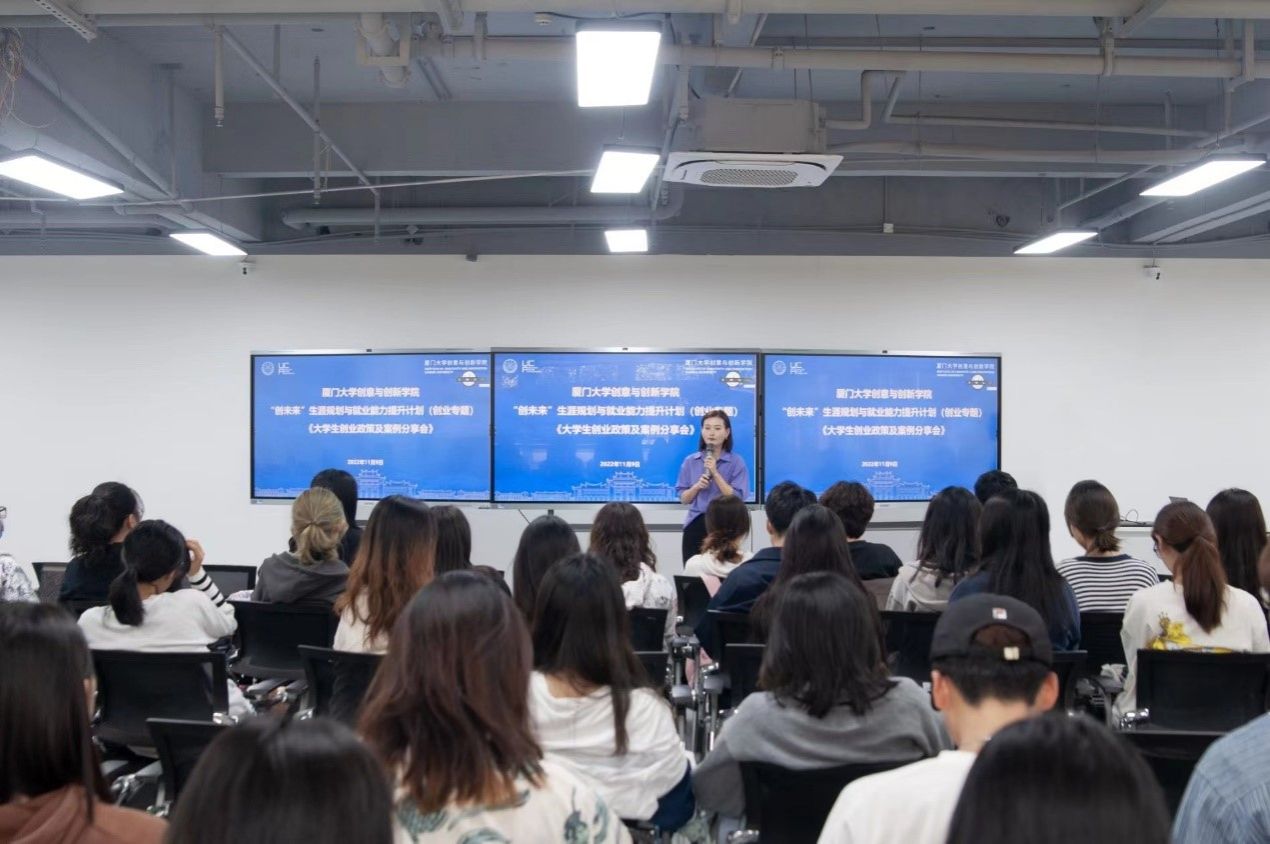 为了增进学生对大学生创新创业政策的了解,切实提升学生的创新创业能力,11月9日,学院在漳州校区“一站式”学生社区举办大学生创新创业政策及案例分享会。本次活动邀请学校学生处学生就业创业指导中心占群丽老师、管理学院2018级硕士研究生、青选至(厦门)科技有限公司(以下简称“青选至”)联合创始人之一张榕杰作为分享嘉宾。学院团委书记廖炜、学生代表共80多人参加活动。
