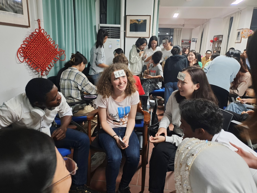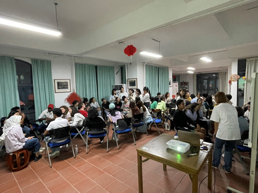本次活动分为三个环节,分别是“分组破冰”“自由讨论”和“中华传统知识问答”。活动开始,同学们抽签分成四个大组,通过“你来比划我来猜”“击鼓传花”等游戏活跃气氛、互相认识,增进了国际学生与国内学生之间的友谊。
