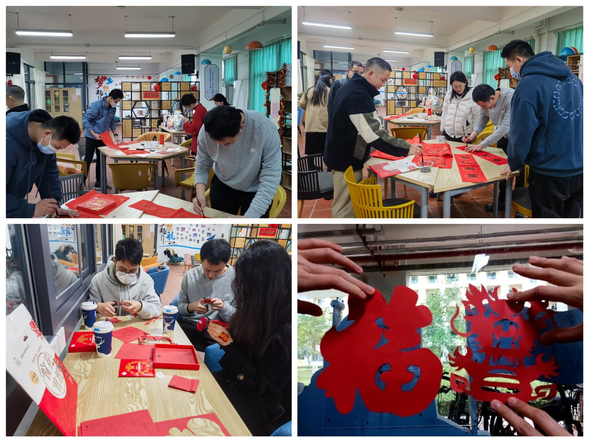 挥毫泼墨迎新春,总把新桃换旧符。贴春联、剪窗花是过年不可缺少的传统习俗,红纸黑字、精巧构思,寄托了老百姓们迎新纳福的美好愿景。在这一年一度的“书法大赛”中,师生们挥毫泼墨,将对新春的祝福寄予笔下。在大家的运笔走势间一幅幅充满喜庆气息、蕴含浓浓年味的对联跃然纸上。而在另一边,随着剪刀的一张一合、辗转移动,一幅幅漂亮生动的剪纸在同学们的手中诞生。新年春联和窗花一贴,年味马上就来了。