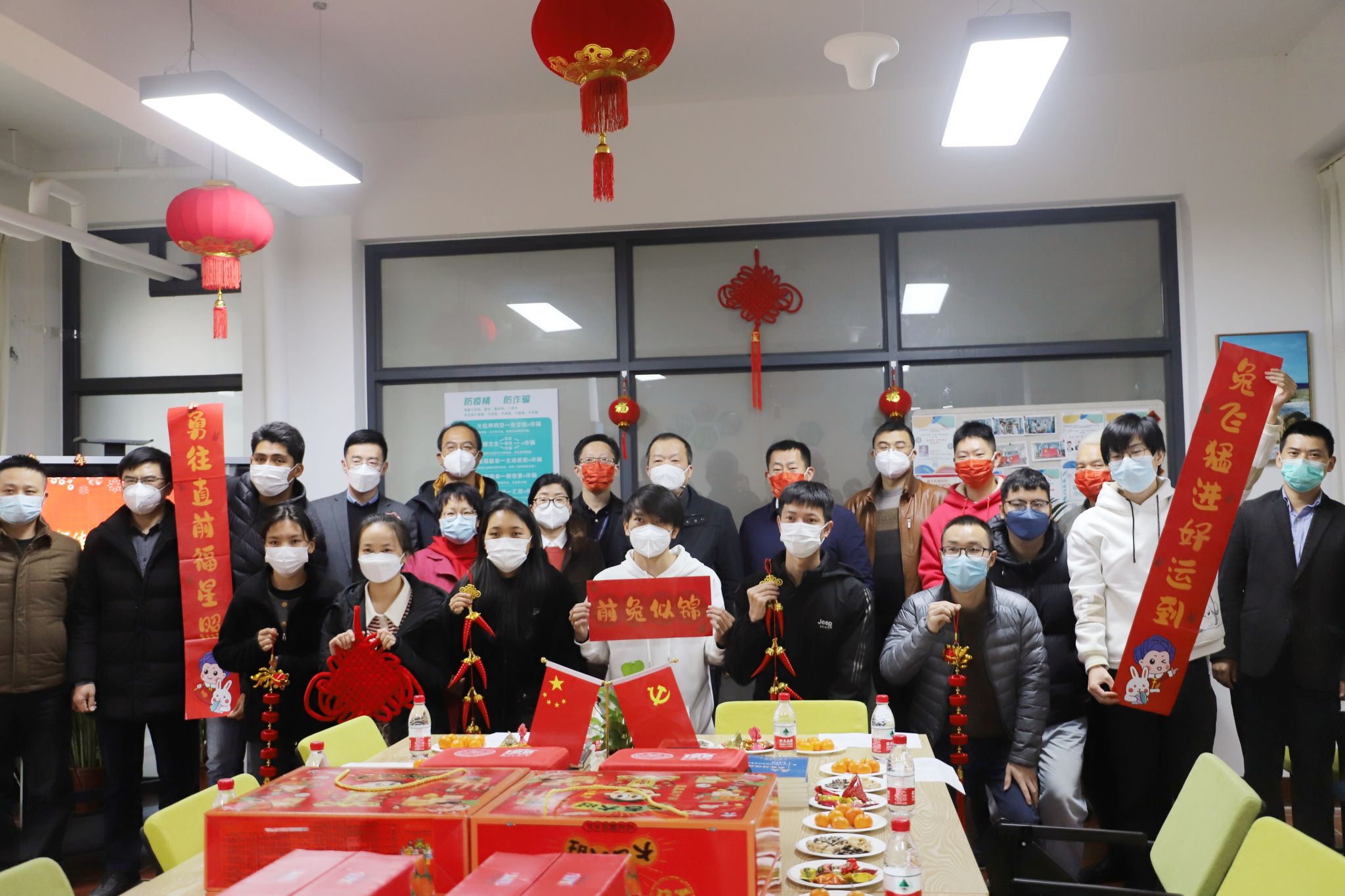 福虎辞旧岁,瑞兔迎新春。结彩灯,挂灯笼,写春联,贴窗花,翔安校区南安5“一站式”共享空间洋溢着浓浓的年味。1月21日下午,校长助理、翔安校区管委会主任陈光,翔安校区管委会副主任马龙,学生办主任高斌一行来到翔安校区南安5“一站式”共享空间看望慰问寒假留校学生,向他们致以新春的祝福和节日的问候。