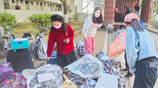 在搬迁过程中,艺术学院研究生第一党支部的党员同志积极发挥先锋模范作用,发扬不怕苦、不怕累精神,主动担当作为,将又大又重的行李从货车上卸下,并按照房间号码排列在一旁,方便本科生同学辨认。在党员的带头作用下,志愿者们各司其职、互帮互助,充分发挥团结互助、无私奉献的精神,高效有序地协助本科生同学完成行李搬迁工作。