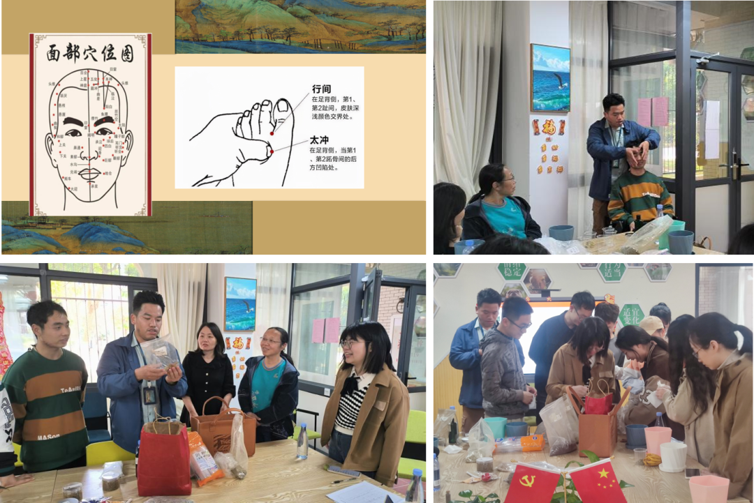 中国传统医学历史悠久、底蕴深厚,凝聚着中国人民和中华民族的博大智慧。中医认为:“五脏之血,六腑之气,皆上注于头”,陈则旭老师着重向师生们介绍头部穴位知识,按摩安眠穴,对失眠头痛炫目均有疗效;按摩印堂穴,可减缓头痛、眼睛疲劳等;按摩凤池穴,可以去风寒,去风热;按摩太阳穴,能加速血液循环,使脑血管通畅;按摩鱼腰穴可镇惊安神、明目利窍等。