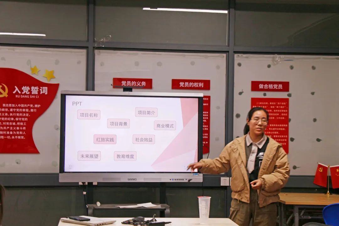 张怡卓学姐介绍了大赛的参赛组别,从互联网+的赛道划分、评审规则出发,为同学们详细地介绍“互联网+”的赛事赛况,并以自己所在团队参赛PPT和视频为例分享了商业计划书撰写、PPT制作和路演等方面的经验,特别地提到了“青年红色筑梦之旅”。这个赛道更专注于广大青年学生深入革命老区、贫困地区和城乡社区,为乡村振兴和生态文明建设做出的贡献。