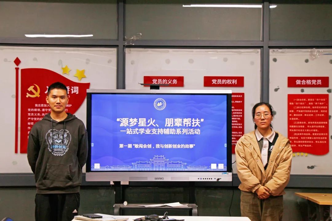为深入学习贯彻党的二十大精神,进一步加强学生学业支持指导与学生综合素质能力提升,激发学生自主学习和发展的积极性和主动性,发挥朋辈引领示范作用。能源学院于3月31日在映雪2-108开展“源梦星火,朋辈帮扶”学生社区学业支持与发展系列活动第一期“敢闯会创,我与创新创业的故事”分享会。本次分享会邀请到2020级本科生张怡卓、2021级硕士生雷雨电两位同学担任主讲嘉宾。两位嘉宾在创新创业大赛方面有丰富的经历,2021级硕士雷雨电曾获得第十五届全国大学生节能减排社会实践与科技竞赛特等奖、第一届中国研究生“双碳”创新与创意大赛三等奖等,2020级本科生张怡卓曾获得第八届中国国际“互联网+”大学生创新创业大赛铜奖。