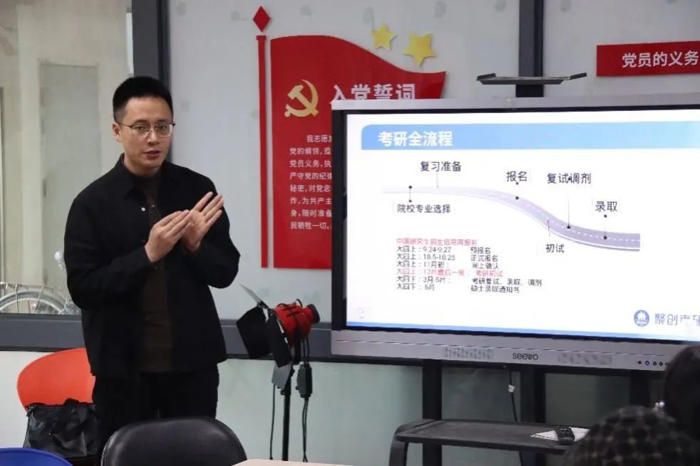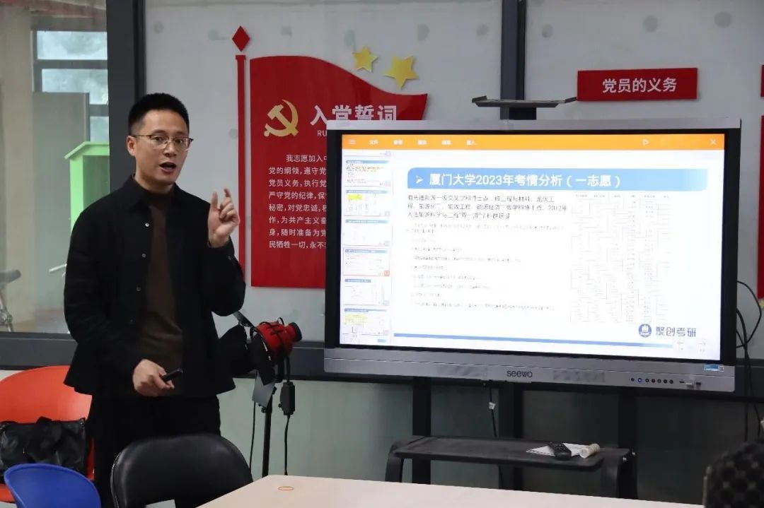 廖老师首先给大家进行了考研院校的专业解析。在大致介绍了考研的全部流程后,他向同学们展示了能源专业的考研方向和特色考研方向,强调报考院校时不可以唯分数论,而是应该结合专业大方向、相关院校往年报考招生情况以及自身能力等等方面进行综合考虑。
