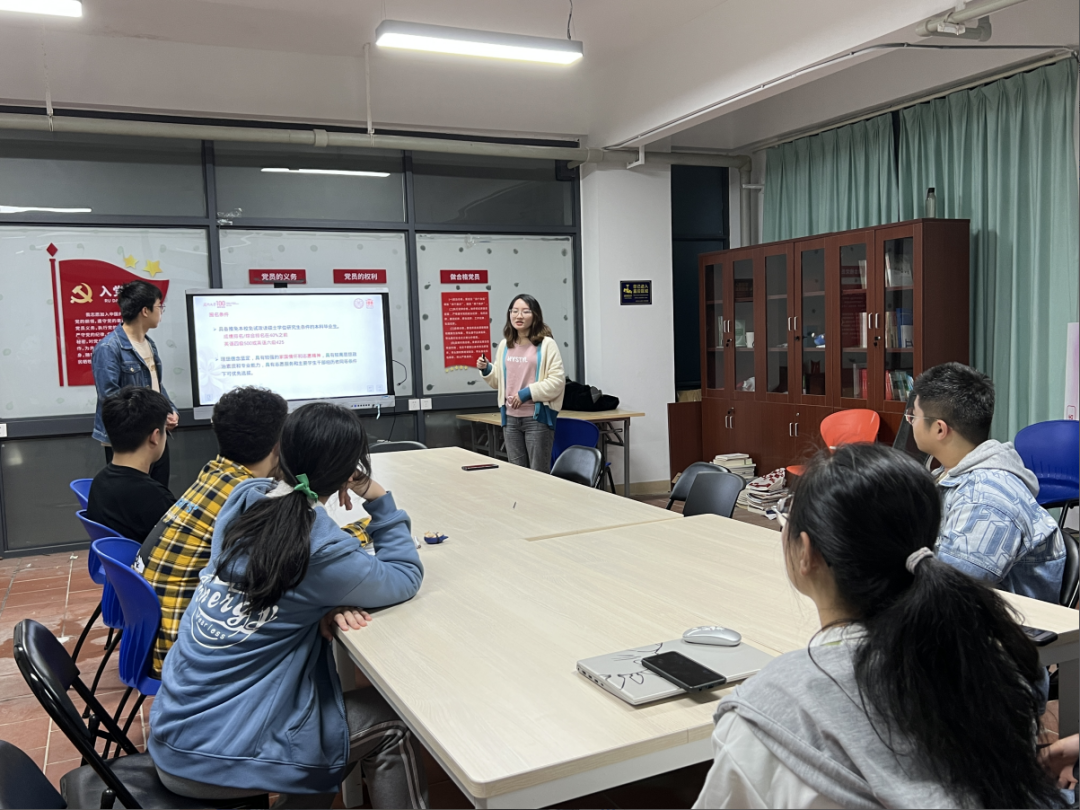 邓翊向同学们详细介绍了支教的概念、政策、教学、生活等方面的情况,支教过程中可能面对的情况和经历的事情,并分享了自己在支教生活的收获与感悟。