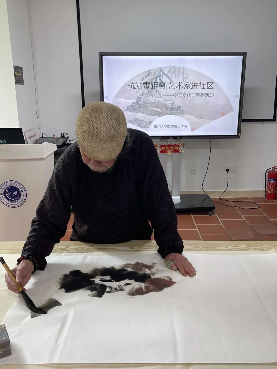 4月24日下午,中国艺术研究院研究中心专职画家邬杰民先生受邀到访映雪五“一站式”学生社区,与师生零距离交流并现场创作画作,带来了一场艺术视听盛宴。此次活动为航空航天学院“一站式”学生社区品牌活动“航站零距离”系列活动之一,同时也是厦门大学第九届空天文化节之“星辰大海·邬杰民航天梦系列绘画作品展”的配套活动。