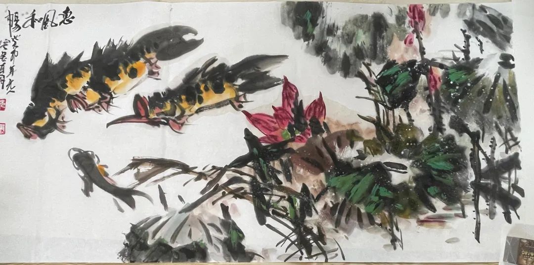 最后,邬杰民老师为在场师生还原了其著名画作《惠风和畅》的创作过程。作画过程中,他一边介绍不同的绘画技巧和细节,一边分享绘画经验,他讲到“绘画中不同主体的关系才是绘画里真的需要去细致描绘的,而不是在作画时画的多么细致。中国画讲究的意境美。”大家从中深受启发。