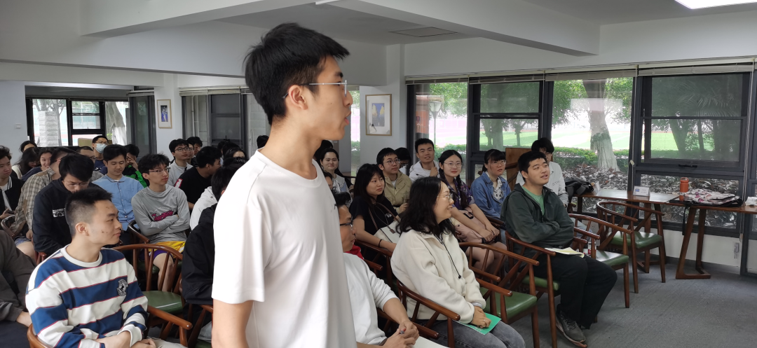 衣行健、孟恺分享了自己的学习感悟。衣行健表示,我们要珍惜学习机会,不断加强对习近平新时代中国特色社会主义思想的理解和认识,不断提高理论水平和党性修养。孟恺表示,作为一名学生党员,要坚持常学常新、常悟常新、常用常新,将学习贯穿主题教育始终,贯穿提高自身能力素质、练就过硬本领、勇于担当作为的过程中,努力为强国建设贡献青春力量。