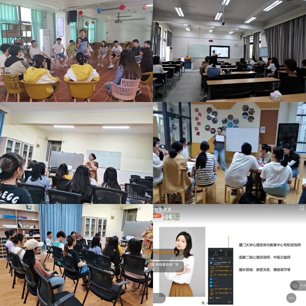 航空航天学院开展“心宇晴空”心理活动月系列活动,依托“厦日心晴”“絮语工作室”微信公众号开展线上心理教育;新闻传播学院联合艺术学院开展舞动工作坊和心灵驿站·禅绕画舒压体验沙龙活动;环境与生态学院开展“与心灵相约,与健康同行”心理主题班会、“我不是最难的”班级心理茶话会;管理学院开展绘美好蓝天,寻本真自我 “悦然伞上”伞绘比赛;信息学院推送“心语小报”系列心理知识科普;国际学院举办“趟过爱情的多恼河”团体沙盘体验活动;创意与创新学院则依托专业特色,组织学生用绘画表达自己的心情与感受。