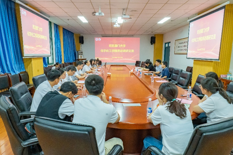 在简要介绍厦门大学化学化工学院基本情况后,聂鑫回顾了两院交往的历史和深厚友谊,希望今后双方在人才培养、党建工作等方面可以进一步深入交流与合作。座谈中,实践队成员就博士后政策、学科优势、成果转化以及研究发展方向等与石油大学的老师们进行了讨论。