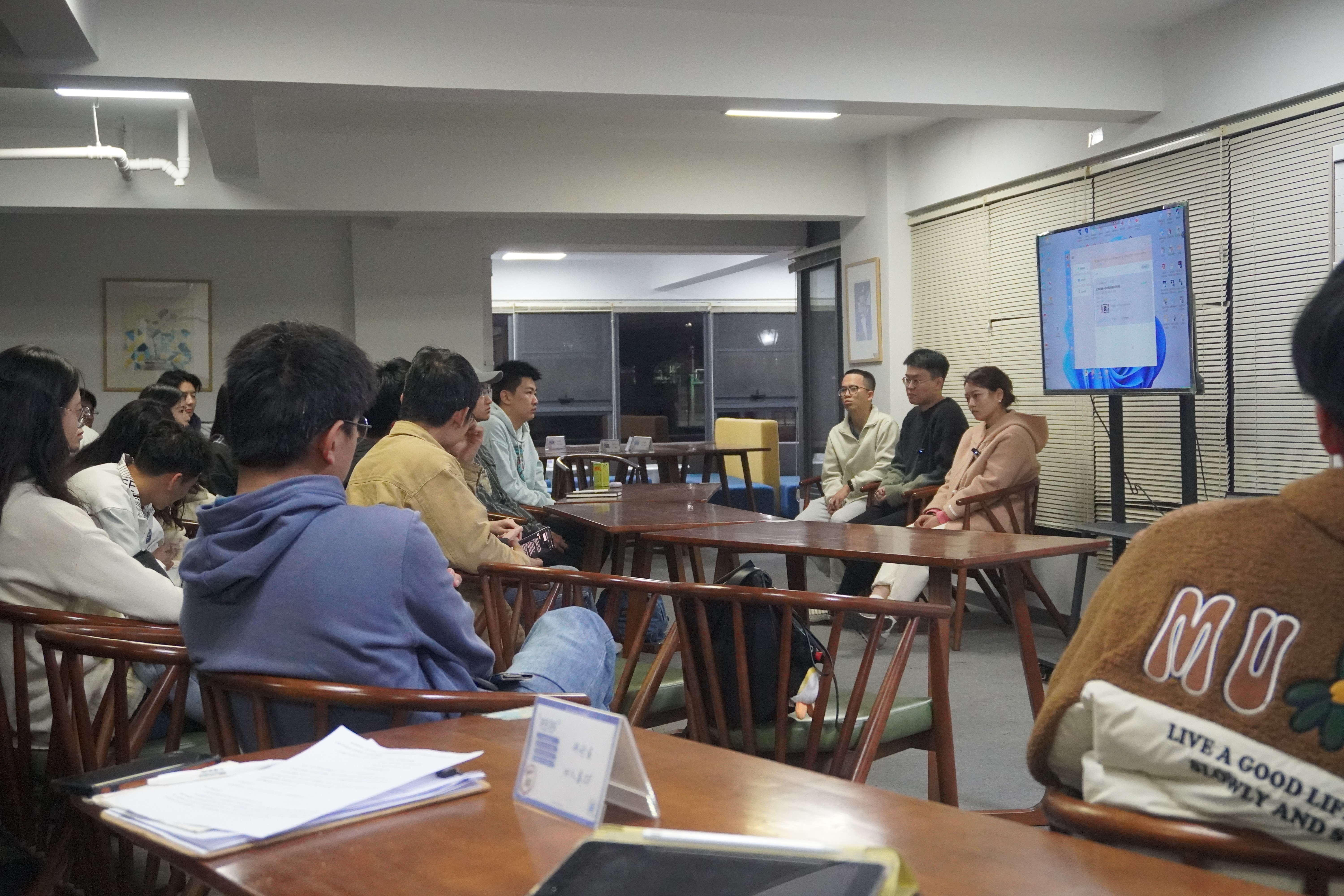 在交流环节中,厦门大学2023级的刘正冉、蒋莉和赵建钢以及上海科技大学2023级的刘杨一同参会,分别介绍了考研复试笔试、面试、调剂等环节的经历和体会。